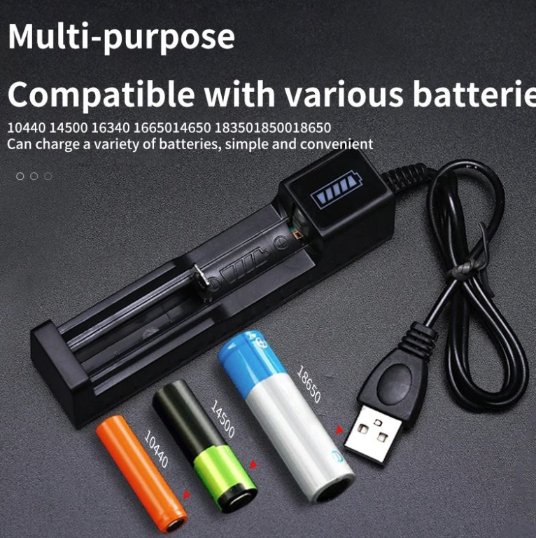CARICABATTERIE CON CAVETTO USB-A E 4 SLOT COMPATIBILI CON LE SEGUENTI BATTERIE AL LITIO 3,7V: