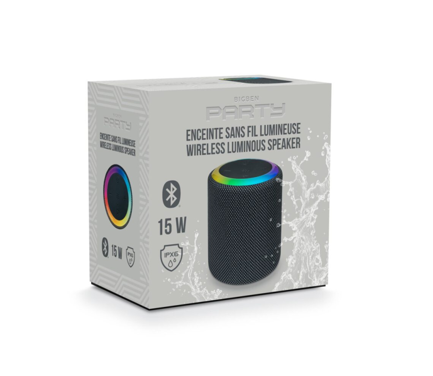 SPEAKER BLUETOOTH 5.1 360° RICARICABILE IPX6 MICROFONO AUX MICROSD TWS EFFETTI LUMINOSI 15W