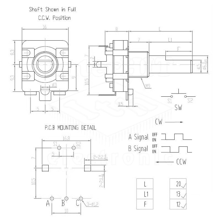 ENCODER ROTATIVO INCREMENTALE 24 PASSI 24imp/giro 16mm ALBERINO 12mm 5VDC 5mA