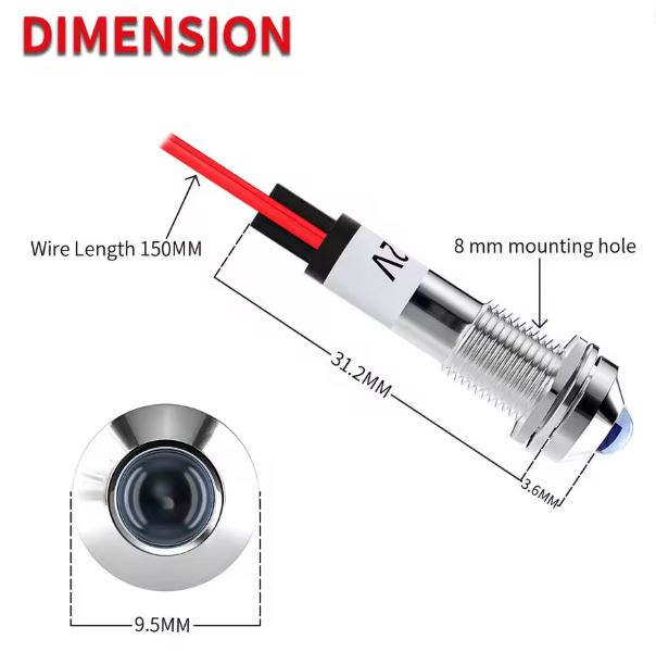 INDICATORE LED DA PANNELLO BLU 12VDC CAVETTI 15cm