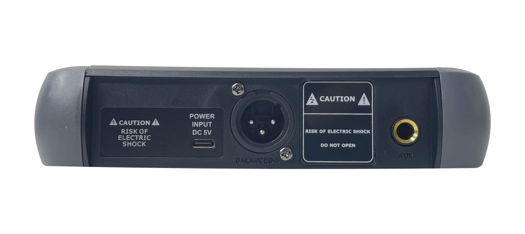 La base ricevente è alimentata da una comune presa USB(cavo e alimentatore in dotazione). Grazie a questa peculiarità è collegabile a diffusori amplificati, a mixer, power bank, notebook o a qualsiasi apparecchio disponga di presa USB. Altra caratteristica esclusiva è di poter cambiare la frequenza operativa(16 canali disponibili) direttamente dal microfono senza doverlo fare sulla base. Le comode prese sia XLR che tramite Jack 6,3mm consentono il collegamento della ricevente nel modo più semplice e professionale.