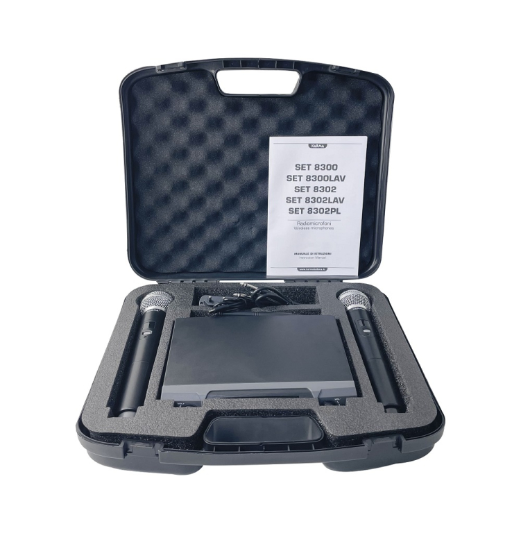 Radiomicrofono compatto ed efficiente comprensivo di doppio trasmettitore palmare. Dispone di 48 canali per poter operare in ogni condizione. La portata è di circa 30mt con ottima resa acustica sia sul parlato che nel canto. La base ricevente possiede 2 prese di tipo XLR indipendenti per ogni canale e una presa mixata di tipo 6,3mm.