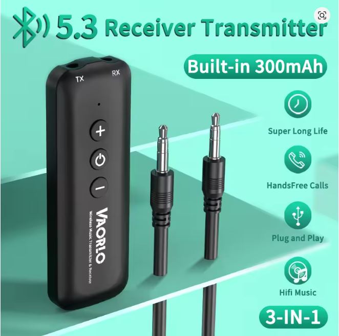 Il trasmettitore Bluetooth trasmette l'audio in modalità wireless a cuffie/altoparlanti Bluetooth. Il ricevitore Bluetooth trasforma l'altoparlante tradizionale in un altoparlante Bluetooth. Funziona con dispositivi con interfaccia da 3,5 mm
