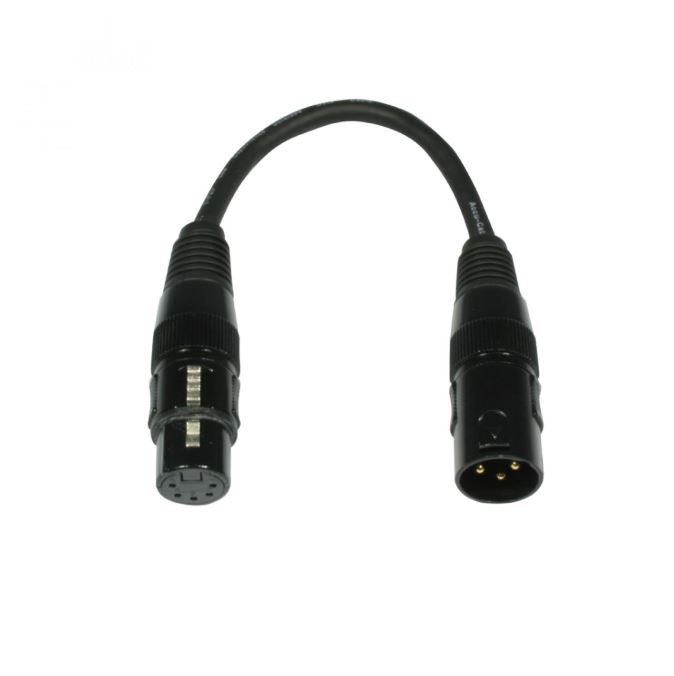 ADATTATORE DMX 110OHM DA XLR 3 PIN MASCHIO A XLR 5 PIN FEMMINA IN METALLO CAVO 14CM NERO ACCU-CABLE