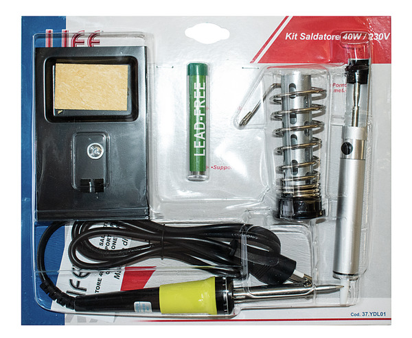 KIT SALDATORE STILO 40W 480°C 220VAC+SUPPORTO CON SPUGNETTA+SUCCHIASTAGNO+STAGNO LEAD FREE