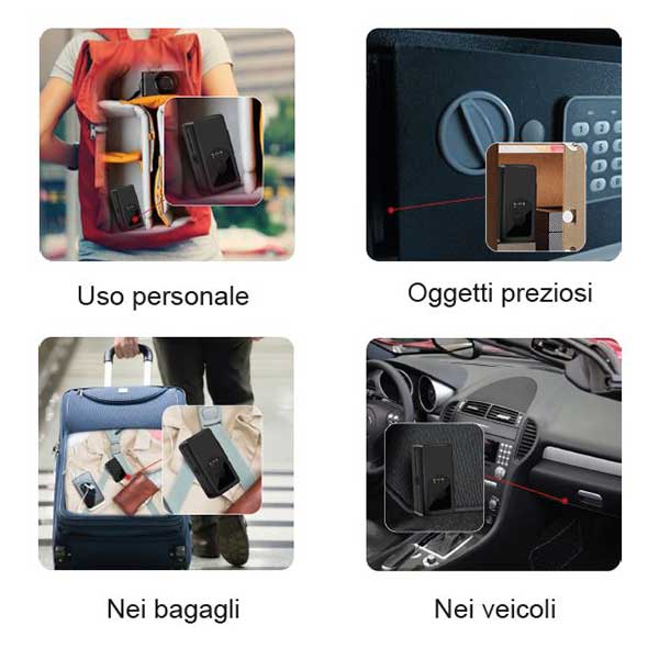 Localizzatore GPS con connettività 4G LTE idoneo per uso in auto e personale (ad esempio per escursionisti), dotato di tracciamento in real-time, ascolto ambientale, Geofence, grado di protezione IP65 e base magnetica per il fissaggio. App dedicata per il tracciamento e la configurazione.