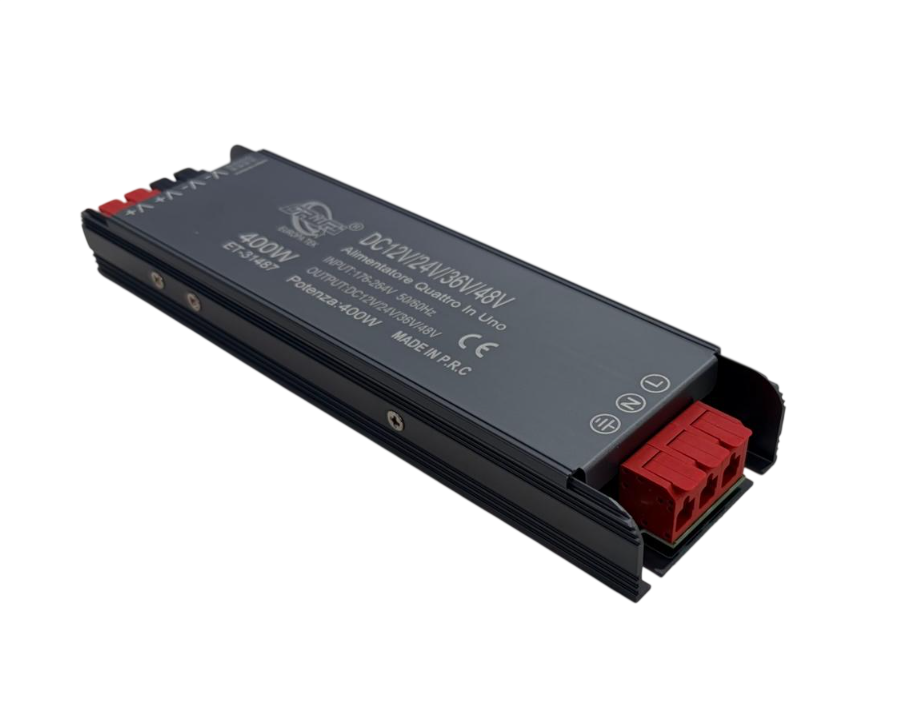 Alimentatore Switching a tensione variabile 12V/24V/36/48VDC professionale, grazie alla sua robustezza e ad un sistema di protezione contro sovraccarichi, corto circuiti e sbalzi di tensione, lo rendono ideale per impianti di vario genere, particolarmente indicato negli impianti di illuminazione a led e per tutte le applicazioni elettriche che richiedono una erogazione d'energia continua e pulita. Grazie a questo alimentatore stabilizzato, potete evitare sovraccarichi di corrente e mantenere costante e pulita l'alimentazione.
