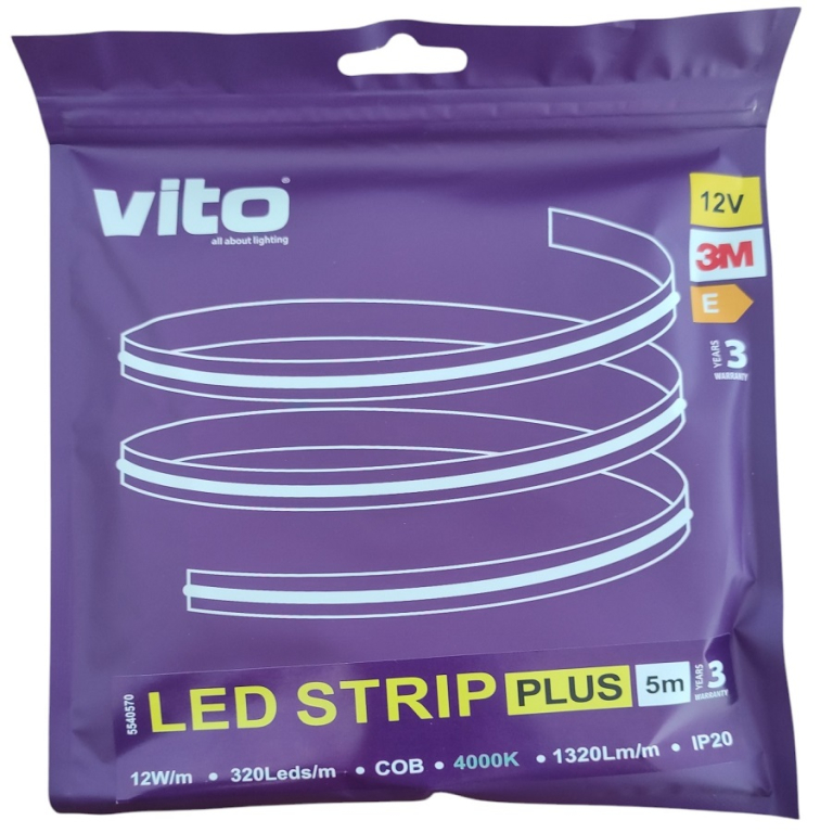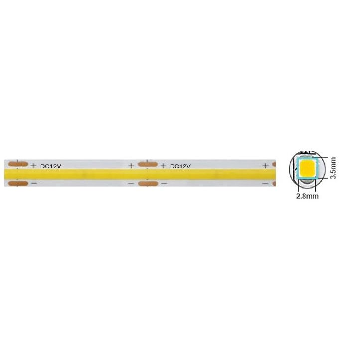 STRISCIA LED COB 12VDC 4000K 12W/MT 320LED/MT 1320LM/MT 140° IP20 TAGLIO 3CM VITO AL METRO