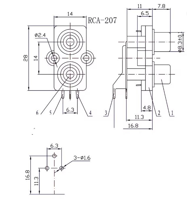 DOPPIA PRESA RCA DORATA DA CIRCUITO STAMPATO