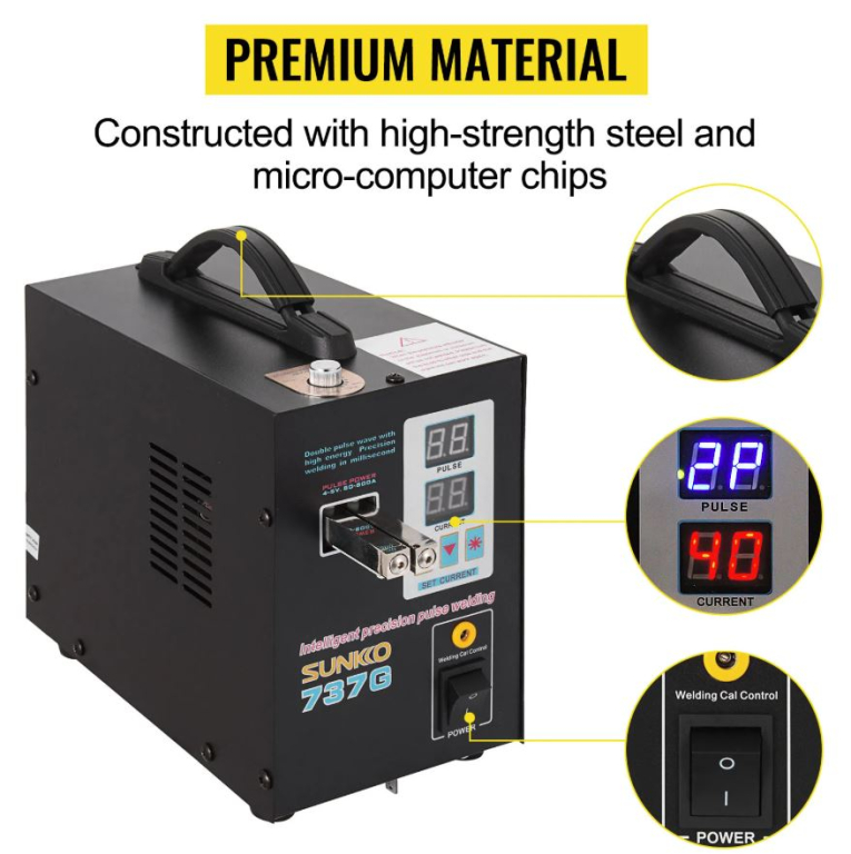 La VEVOR 737G è una saldatrice a punti a impulsi progettata principalmente per l'assemblaggio di pacchi batteria (come i modelli 18650 e 14500) unendo celle in serie o parallelo tramite strisce di nichel. È un dispositivo compatto e portatile, ideale per hobbisti e piccoli lavori di riparazione.