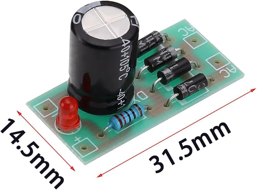 Modulo di conversione di tensione da AC a DC con raddrizzatore a ponte intero 1N4007 e filtro.