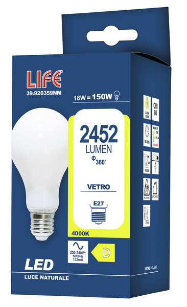 LAMPADA LED GOCCIA A70 FILAMENTO MILKY E27 18W 4000K 2452LM 70x126mm 220VAC