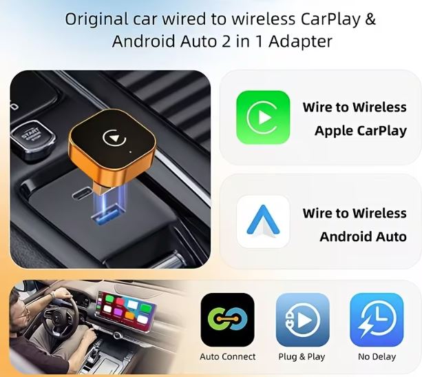 ADATTATORE DA AUTO PER UTILIZZARE CARPLAY (IOS) E ANDROID AUTO (ANDROID) IN MODALITA' WIRELESS