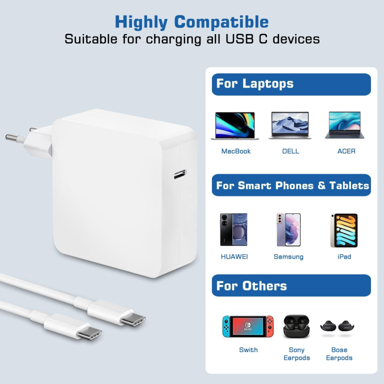 ALIMENTATORE PER NOTEBOOK TABLET SMARTPHONE USB TYPE-C PD 100W MAX 5A
