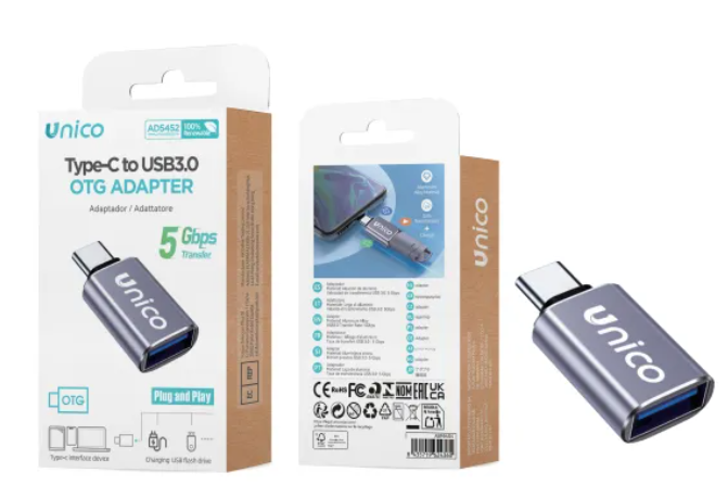 ADATTATORE OTG DA PRESA USB A 3.0 A SPINA TYPE-C 5Gbps METALLO