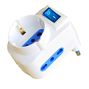 Adattatore spina elettrica schuko tripla 3 ingressi bipasso interruttore.