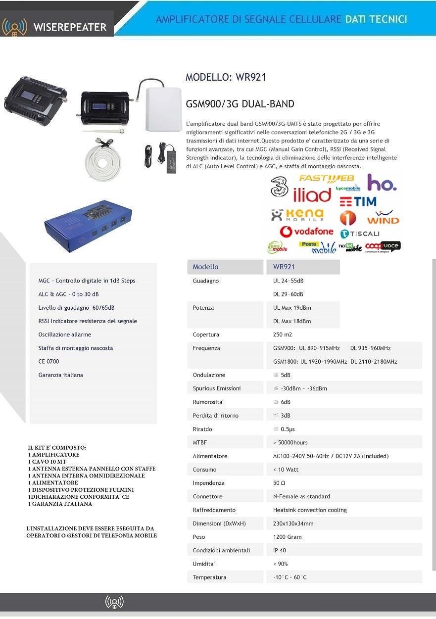 KIT AMPLIFICATORE 55-60DB DUAL BAND GSM (900MHZ) 3G UMTS (1.800-2.100MHZ) - 250MQ