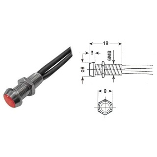 Segnalatore luminoso metallico 220 VCA NEON. Resistenza incorporata. Corpo in ottone cromato. Lunghezza cavetti 25 cm. Sezione cavetti 0,5 mm. Fissaggio con dado.