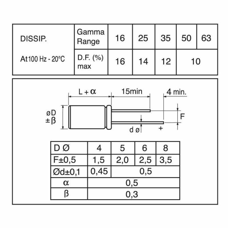 CONDENSATORE ELETTROLITICO 10UF 35V RADIALE 105°