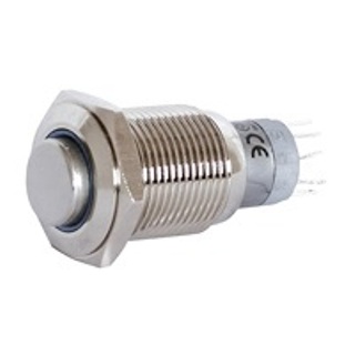 Interruttore antivandalismo ON/OFF. Interruttore in metallo. Fissaggio con dado. Potenza di commutazione 230 V AC / 3A. Dimensione: diametro di montaggio 16 mm. x lunghezza 28 mm. Contatti a saldare.