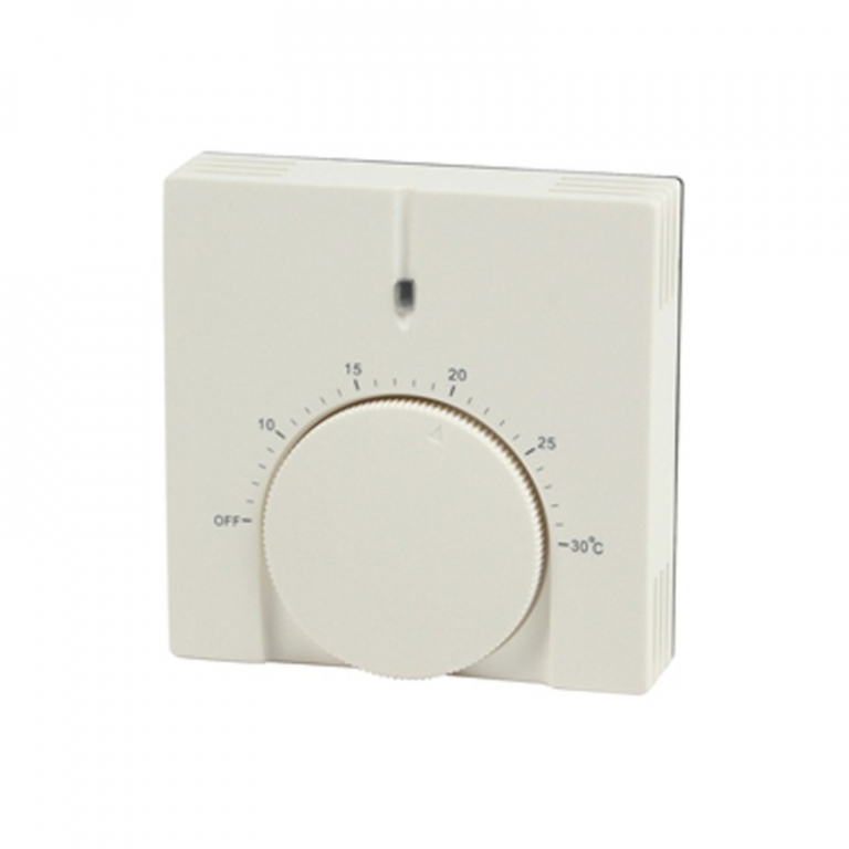 Termostato ambiente facile da utilizzare con indicatore a LED. Il termostato è dotato di un`uscita senza tensione ed è adatto per l`utilizzo con un sistema di riscaldamento a 230 V.