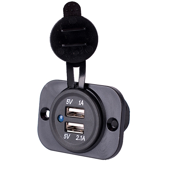 CARICABATTERIE PORTA USB DA PANNELLO 12/24 WATERPOOF > 2 USB 1A / 2.1A 5V